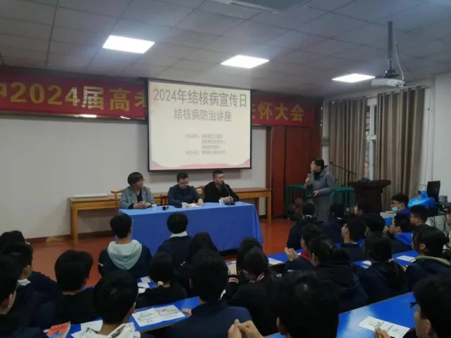3月25日上午,區(qū)衛(wèi)健委黨委委員區(qū)疾控中心沈頌軍主任、淮南新華醫(yī)院呼吸內(nèi)科紀(jì)偉主任一行人來(lái)到望龍高中,在階梯教室舉行了3.24世界預(yù)防結(jié)核病日宣傳活動(dòng)。